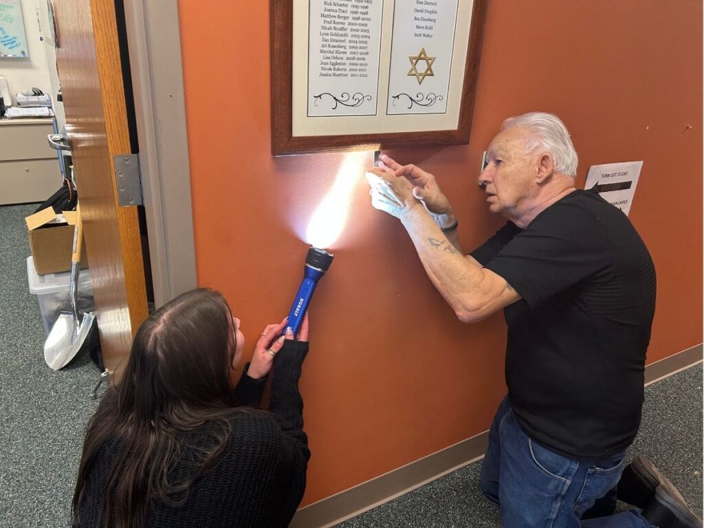 Over the years, Enos has seen our community through everything—High Holy Days and Hanukkah celebrations, Sunday mornings filled with laughter, late-night event cleanups, and the moments of quiet between it all. He has watched generations grow, cheering on students who once toddled through the halls. “I’m gonna miss everybody,” he said softly. “I built great relationships with everyone… I hope everybody keeps me in their heart, because you will all be in my heart forever.”